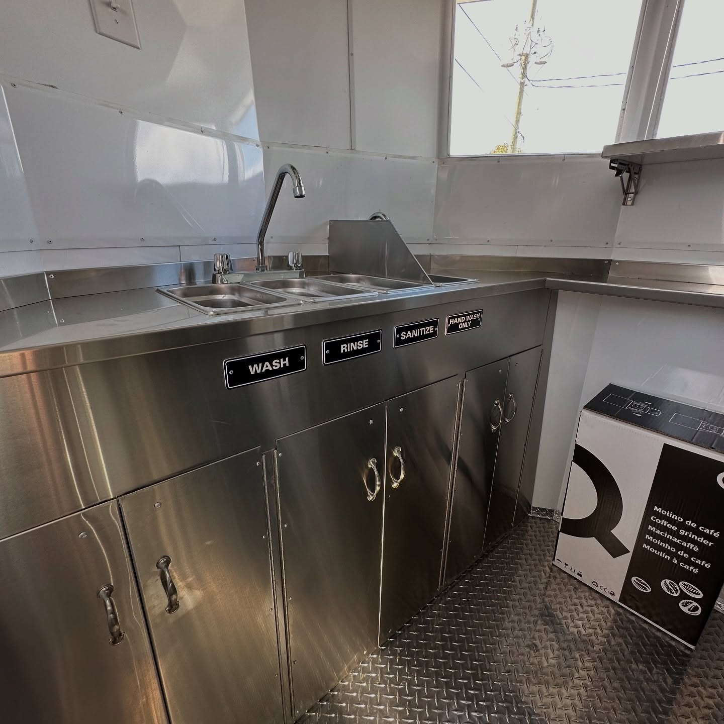 -3 Compartment Sink and Hand sink Work table with Storage Lots of shelves Storages.